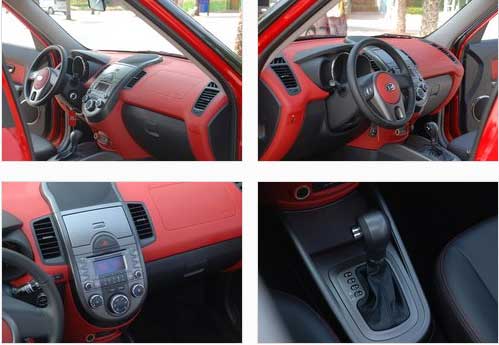 在方向盤也就是駕駛者的周圍分布著很多按鈕,不過別擔心,再生疏的駕駛者也不會因為這些按鈕或是功能而手忙腳亂,因為設計師早已經為您的日常使用考慮的很周到了。位于儀表臺左側的三炮筒式儀表盤設計還算時尚,但是儀表盤的功能并沒有太多新鮮元素的注入,這一點也是因為成本的考慮而不得不落入俗套。中控臺左側下方是控制大燈高度的調節按鈕,右側的控制鈕是SOUL的最大特點,即控制前車門揚聲器發光的開關,它可以跟隨音樂節奏變換紅色燈光的閃爍,如同將迪廳的燈光帶入了車內。