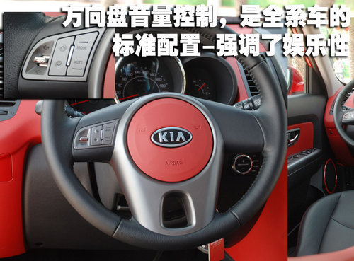 SOUL全系車型的方向盤上方都帶有一個(gè)音響控制按鈕,通過(guò)這個(gè)區(qū)域可以控制收音機(jī)、CD、MP3以及各個(gè)音樂(lè)模式之間的切換。強(qiáng)調(diào)娛樂(lè)性絕對(duì)是SOUL設(shè)計(jì)中最大的一個(gè)亮點(diǎn)。不過(guò)方向盤本身的造型還是比較普通,和剛剛上市的起亞福瑞迪很是相像。