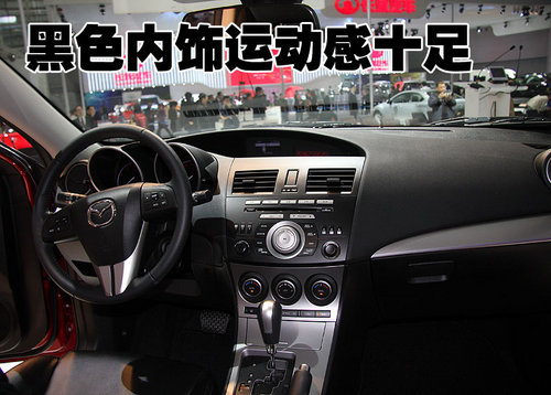 全新的馬自達3兩廂的內飾依然采用了黑色真皮座椅,另外這款車還采用了電動座椅帶記憶及加熱功能、雙區自動空調系統、10高保真音響組合、藍牙、IPOD接口、導航系統以及感應式雨刷等舒適性配置。