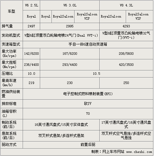 全新CROWN皇冠首次導入了搭載V8 4.3L發動機,該發動機運用了豐田獨有的VVTi技術,在保證強勁動力輸出的同時,又很好的控制了油耗。在動力上4.3排量車型最大輸出功率達到了208千瓦,最大輸出扭矩達到420牛米,性能上全面提升。和現款一樣,新一代皇冠搭載了6速手自一體變速箱。為了保障豪華的駕駛和乘坐感受,4.3L排量配備了前雙叉桿式空氣懸掛,后多連桿式空氣懸掛,在高速以及長途行駛中全面提高車身穩定性和舒適程度。