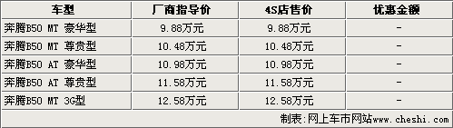 據(jù)一汽奔騰4S店銷售人員介紹,奔騰B50目前的銷售情況非常好,但現(xiàn)在所有車型顏色均不是很全,部分顏色仍需要預(yù)訂。消費(fèi)者如果預(yù)訂奔騰B50,需要交付1000元訂金,而且B50自上市起到現(xiàn)在一直沒有任何優(yōu)惠活動(dòng)。而3G版車型則一直處于無車的狀態(tài),還請(qǐng)消費(fèi)者諒解。