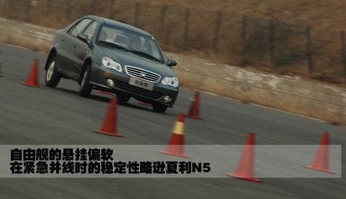 自由艦比較注重舒適性,懸掛的挑選比較柔軟,在緊急并線時側傾比較厲害,并且車頭的指向性一般,沒有夏利N5的自動修正功能,有時候需要車身的慣性通過麋鹿測試。