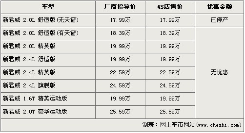 根據(jù)北京別克經(jīng)銷店銷售人員介紹,全系入門級(jí)的無天窗2.0L舒適版已經(jīng)停產(chǎn),取而代之的是加裝了天窗的2.0L舒適版車型,售價(jià)上也比無天窗車型貴了4000元,售18.39萬元。店內(nèi)只有2.0L精英版有現(xiàn)車,現(xiàn)車數(shù)量有限,欲購買其他車型的消費(fèi)者需交訂金1千元,最高下個(gè)月可提車。