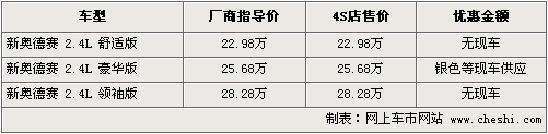 據廣汽本田4S店銷售人員介紹,新奧德賽訂單一直在持續增加,現無任何優惠。店內現有2.4L豪華版部分現車供應,其它車型顏色并不齊全需要預定,預定訂金為1000元,1月初左右就可以提到車。如需了解購車詳情,請咨詢當地經銷商處。北京地區各4S店由于訂單不同,各店銷售的現車顏色有所不同。