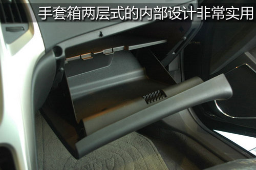 英朗的手套箱實用性非常強,內(nèi)部采用了上下分層式的設(shè)計,上部可以放一些紙張之類的物品,下部則是可以承裝體積稍大的物品,手套箱中還帶有硬幣卡槽。