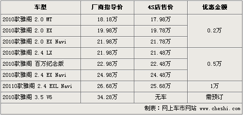 據(jù)廣汽本田4S店銷售人員介紹,目前雅閣全系現(xiàn)車供應(yīng)依然比較緊張,只有部分車型有少量現(xiàn)車。其中2.0排量全系優(yōu)惠僅在2000元左右,個別店甚至沒有優(yōu)惠,2.4排量除百萬紀(jì)念版、EX導(dǎo)航版有少量現(xiàn)車之外,其它款均需要預(yù)訂,現(xiàn)車優(yōu)惠幅度也在5千元-1萬元之間。目前訂車的話,最少也需要等1個月左右時間,訂金為5000元。