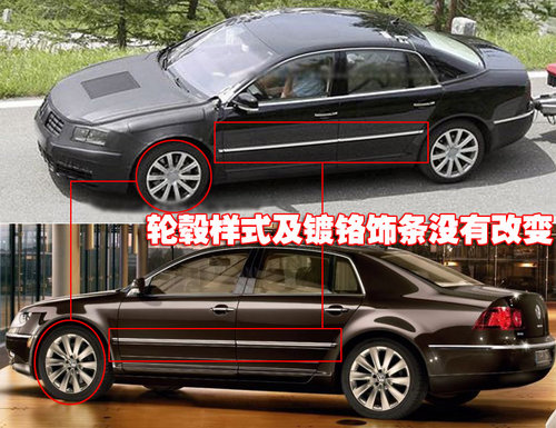 大眾新輝騰側(cè)面線條與在售車型保持一致,貫穿的鍍鉻飾條設(shè)計(jì)依然出現(xiàn)在大眾新輝騰的車身兩側(cè)。除此之外,10輻合金大尺寸輪轂依然沒有改變。