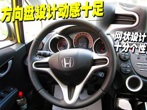 新飛度采用運動風格突出的三幅運動方向盤,真皮包裹抓握時手感很好。喇叭按鍵比較靠近方向盤四周,駕駛者在按喇叭的時候無需要大幅移動就能完成這個動作。但遺憾的是新飛度的全系車型沒有采用時下流行的多功能方向盤。