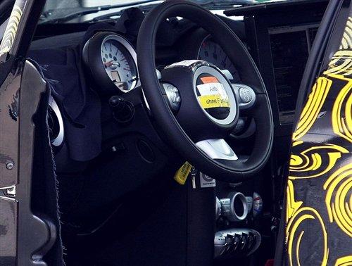 很習慣的我們發現,這款大號MINI車型的內飾依舊很好的繼承了Cooper和Clubman的傳統,轉速表還是在方向盤后方的位置,而如一個籃球般大小的時速表依舊還是處于中控臺最明顯的中間位置,方向盤中間被封條遮擋住的也肯定是翅膀狀的MINI標識了。