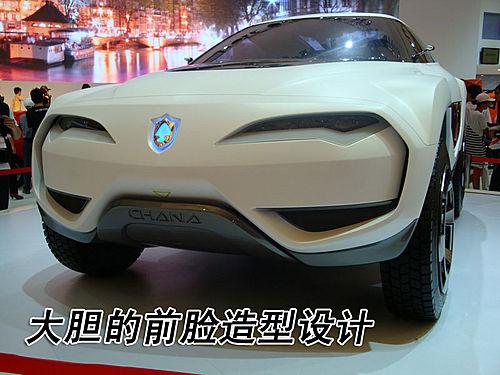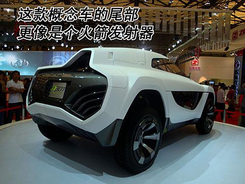 長安E301概念車的造型則大膽、新穎,是一款為追求時尚、熱愛運動、富有創新精神、勇于嘗試新鮮事物的年輕人傾力打造的雙門三座小型運動越野車。尤其是前臉的設計,非常具有創意。