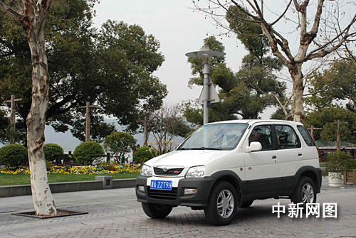 春意盎然的西湖邊,記者看到一輛車身多處有“EV”標識的眾泰2008赫然掛著嶄新的車牌“浙A2279H”。這是目前中國第一輛擁有合法行駛車牌的純電動乘用車.據眾泰集團董事長吳建中介紹,這款車是以眾泰2008為基礎,把汽油發動機換成超大功率的聚合物磷酸鐵鋰電池組,擁有四輪驅動系統,其最高車速能達100-120公里/小時,充一次電需要10小時,可跑300公里。