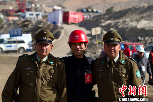 中新網長沙10月10日電(周娜 肖前輝)當地時間10月9日,智利圣何塞銅礦救援隧道打通,33名受困礦工有望在3-8天后獲救,結束兩個多月的地下生活。在救援現場隨時待命的,有一個來自中國的龐然大物,還有唯一的一張亞洲臉孔。