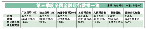 數(shù)據(jù)顯示,人民幣貸款前三季度增加6.30萬(wàn)億元,9月份增加5955億元,不但高于7、8月份數(shù)據(jù),也高于市場(chǎng)預(yù)期的5000億元左右,顯示季末銀行放貸的沖動(dòng)。