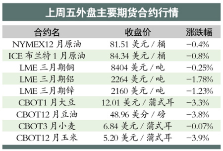 紐約商業期貨交易所(NYMEX)的原油期貨略跌0.4%,收報81.51美元/桶;倫敦金屬交易所(LME)的有色金屬也大多收跌,但銅、鋁、鋅三個品種的跌幅都在2%以內。