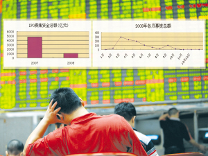 從2008年1月1日至今,上證綜指從高點5522點跌至12月12日的1954點,下跌幅度超過60%。市場深幅調整不僅使投資者“巨虧”,同時也讓IPO規模大幅縮水。