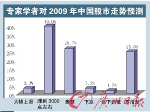 對(duì)于今年中國(guó)股市的走勢(shì),40%的專家認(rèn)為將恢復(fù)上漲到3000點(diǎn)左右,26.7%的受訪專家認(rèn)為市場(chǎng)處于盤整期,認(rèn)為“大幅上漲”和“下跌”的各占3.3%,另有25%的人表示“不清楚”。(詳見(jiàn)上圖) (文/記者黃蓉芳 通訊員徐剛、史玉梅)