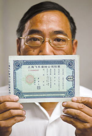 也就是這張“小飛樂”和這次股票實物展,使我迷上了實物股票收藏,覓到了“老八股”中的“真空電子”和“延中實業”,收藏了“第一鉛筆”、“永生制筆”、“膠帶股份”等已經印刷但沒有使用過的實物股票,還收藏起解放前的老股票,共百余種。股票的收藏還改變了我的命運,我擔任了上海股藏投資管理有限公司的副董,開發了《中國改革開放時期實物股證》鑒藏冊、《中華人民共和國上市公司股票上海地區收藏冊》等,成了一名推廣、普及證券收藏文化的“專業人士”。