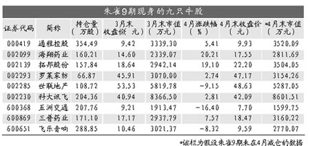 假設朱雀9期在3月過后沒有減倉,那么其在4月末對9只股票的持倉市值達到了34408.68萬元,較3月末的33749.41萬元上升了1.95%。