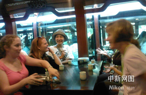 “運河的水很干凈,我特別喜歡兩岸的古建筑,有中國的味道。”乘著運河漕坊、品著龍井茶的一名外國游客告訴記者,1986年她第一次來到運河,那時兩岸破破爛爛的,水也很臟,但是現(xiàn)在一切都大變樣了。