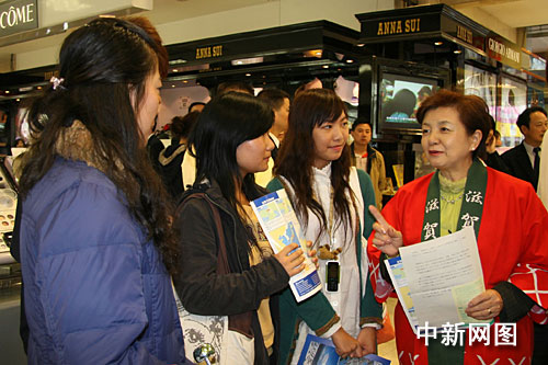 10月31日,日本滋賀縣知事嘉田由紀(jì)子(右一)在湖南平和堂商場向消費者推介滋賀縣的旅游資源。作 者:鄧霞