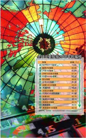 截至29日收盤,美國標普500指數(shù)跌了41%,創(chuàng)下1931年“大蕭條”時期以來最大跌幅。今年以來美國股市市值“蒸發(fā)”達創(chuàng)紀錄的7.3萬億美元。英、法、德三大股市今年的跌幅都在四成左右,已在昨天結(jié)束今年交易的日本股市則暴挫42%,創(chuàng)歷來跌幅之最。