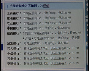 郭田勇告訴記者,監(jiān)管部門給了銀行一定的收費(fèi)自主權(quán),其宗旨是為了促進(jìn)銀行間的競(jìng)爭(zhēng),以使費(fèi)率的制定更趨合理化,為市場(chǎng)受眾所接受,但據(jù)記者了解,央行開通小額支付系統(tǒng)已經(jīng)將近兩年,針對(duì)通存通兌業(yè)務(wù),央行當(dāng)時(shí)規(guī)定是僅向商業(yè)銀行收取每筆基準(zhǔn)價(jià)格0.5元,即便兩年過去了,央行基準(zhǔn)價(jià)格會(huì)有微調(diào),但目前從各行實(shí)際制定的費(fèi)率水平和結(jié)構(gòu)看,目前的定價(jià)無疑偏高,而且針對(duì)于同一項(xiàng)業(yè)務(wù),大銀行比小銀行的定價(jià)高出十幾倍甚至幾十倍,那么,不同銀行的手續(xù)費(fèi)為什么會(huì)如此懸殊呢?
