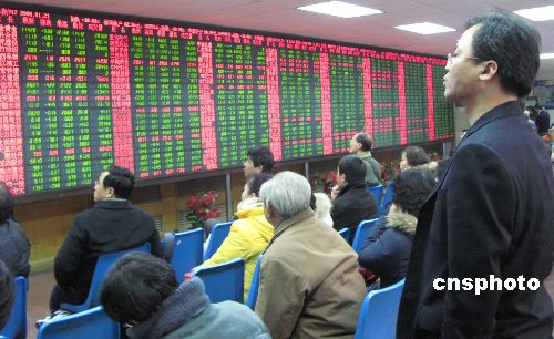 1月21日周一,中國股市現黑色星期一,滬深股市大盤在權重股合力引領下劇烈下跌。圖為北京郁悶的股民以驚訝目光觀察股市。中新社發 鄒憲 攝