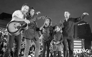 奧巴馬的妻子與兩個(gè)女兒為他上臺(tái)助陣 新華/路透圖