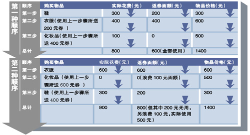許多顧客為了用掉100元返券,通常需要加錢來購買一樣本來不在計劃中的商品。或者,為了湊夠優惠消費金額,而購買一件小玩意。但是,通常這些你不注意的小玩意就是利潤的大頭。例如,一件衣服199元,你可能覺得為了1元而與優惠“失之交臂”,情急之下買了一雙29元的襪子。但如果商場改用直接打折的話,很可能張小姐買了褲子后就不會再要襪子了。