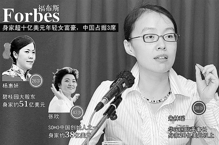 2007年,朱林瑤以135億元的資產(chǎn)名列胡潤富豪榜第44名。她1970年出生在四川,2008年,被《福布斯》評為全球最年輕白手起家十億美元級女富豪。