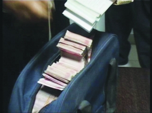就是這個舊包,裝滿沉甸甸的105萬元現鈔