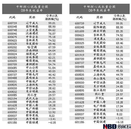 與中郵核心優選不同,中郵核心成長則側重配置能源股和地產股,該基金配置比例超過凈資產1%的26只股票中,能源地產類占7只,包括國陽新能、潞安環能、西山煤電、華發股份、金地集團、中糧地產和萬科A。
