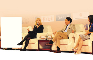 嘉賓對話現場,左:施羅德女士、中:胡立陽先生、右:諾亞財富總經理汪靜波。劉瀏 攝