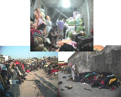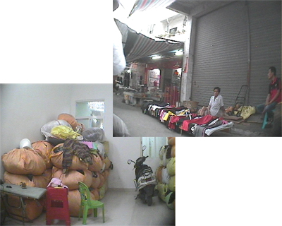 簡單的攀談之后,這名商販極為熱情地邀請記者回家看貨,經過近半個小時的車程,記者來到了一座三層小樓的門前。走到二樓記者看到,在這個已經被用作倉庫的房間里,堆滿了一捆一捆的洋垃圾服裝,而這,就是商販口中所稱的舊衣服。