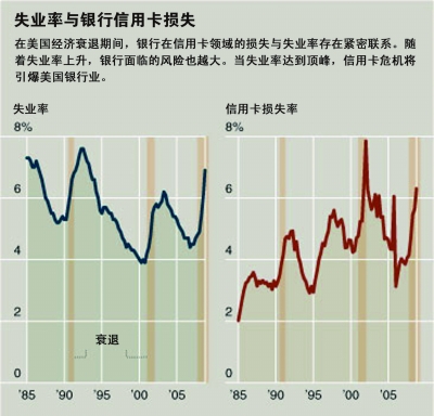 隨著美國(guó)失業(yè)率飆升至8.9%達(dá)53.9萬(wàn)人時(shí),許多信用卡持卡人陷入財(cái)政困境,無(wú)力償還欠款。更多的失業(yè)意味著更多的銀行損失。專家預(yù)測(cè),很快會(huì)有上百萬(wàn)美國(guó)人無(wú)力償還信用卡債務(wù),對(duì)發(fā)卡銀行來(lái)說(shuō),這是持卡人給他們挖的一個(gè)“新坑”,信用卡損失正成為美國(guó)銀行業(yè)面臨的新挑戰(zhàn)。