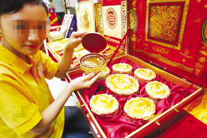 營業員正展示價值2888元的月餅。 圖片來源:重慶商報
