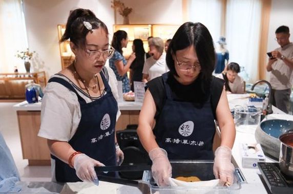 | 將荷葉自池塘里摘下,用手反復(fù)揉搓,讓紗布與汁液充分融合,稍等片刻,一塊黃色的紗巾就出現(xiàn)在段惠的手中。 |