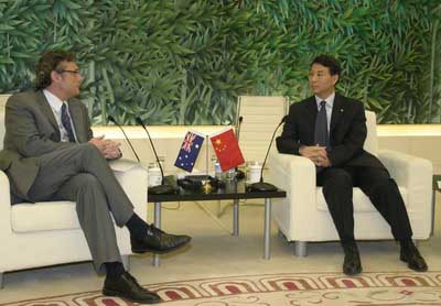 中新網(wǎng)5月23日電 據(jù)中國商務(wù)部網(wǎng)站消息,今日商務(wù)部副部長易小準(zhǔn)會見了澳大利亞駐華大使芮捷銳。芮捷銳向易小準(zhǔn)遞交了澳大利亞政府對四川地震災(zāi)區(qū)追加提供的救災(zāi)物資清單,總價值100萬澳元(約合95萬美元)。