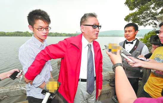 昨天下午,杭州劉莊,只睡了4個小時的李敖在接受完省領導接見、媒體訪問和午餐以后,本來已經回房午休了,結果中途他拉著兒子的手出來,兩個人悄悄地走到湖邊欣賞風景。那時,留在劉莊的記者所剩不多,看到父子兩個親昵交談的背影都有點不好意思上前打擾。終于有人鼓起勇氣和李敖搭話,他就感慨:“我們一家人其實從來沒一起出來旅游過,這次以后也許也沒有更多的機會了。”記者被感染了,舉起相機為他們父子在湖邊留下合影。