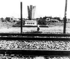 1938年,日本關(guān)東軍為了永久紀(jì)念那次戰(zhàn)爭(zhēng)陰謀,在當(dāng)年的爆破地點(diǎn)附近用鋼筋混凝土建造了一座碑,并為該碑加上了寬大穩(wěn)固的梯形基座。日軍不僅在基座正面刻了“爆破地點(diǎn)”四個(gè)字,還在碑后數(shù)米之外立了四個(gè)牌子,分別寫上“爆”、“破”、“地”、“點(diǎn)”四個(gè)大字,同時(shí),原有的條形標(biāo)志木牌也一并保留。從遠(yuǎn)處望去,整個(gè)碑就像是扎入底座里的一枚炸彈,因此也被人們形象地稱作“水泥炸彈”或“炸彈碑”。