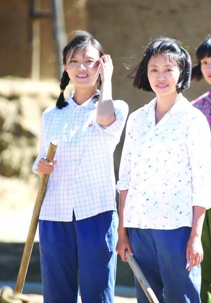 ▲電視連續劇《知青》劇照。左一為傅晶飾演的周萍,左二為張齡心飾演的孫曼玲。