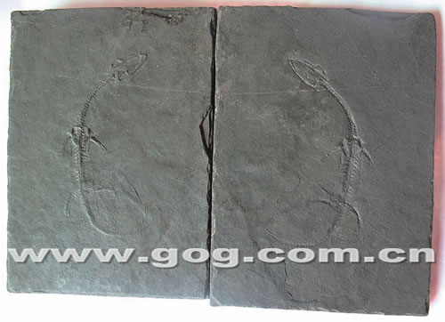 昨日,安順(注:貴州省)的周女士向記者展示了一套極其罕見的“陰陽”版魚龍化石。該化石正面是凸出的,反面是凹進去的,合在一起便是一條完整的魚龍。可以看出,這條魚龍化石是在一塊整石上剝離出來的。魚龍化石長約10厘米,寬約2厘米,極有可能是一條剛出生不久的魚龍。它的牙齒、腳趾、骨骼等均很清晰,其形態就像正在大海中自由自在地游弋。周女士介紹,該化石是她9年前收藏的。(記者 徐榮鋒)