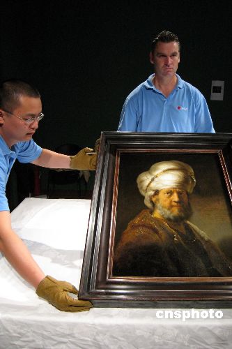 十七世紀荷蘭繪畫大師倫勃朗的代表作“東方人”十月二十五日亮相上海博物館。“荷蘭阿姆斯特丹國立博物館珍藏展”十一月三日起在上博舉辦,將展出十七世紀荷蘭油畫、版畫、銀器等珍貴文物,其中包括倫勃朗本人及其畫室的四件油畫作品和二十幅銅版畫精品。這是倫勃朗作品首次來華展出。中新社發 姜煜 攝