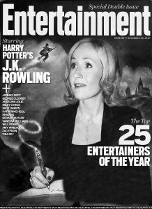 《娛樂周刊》按照一個(gè)班級(jí)里可能會(huì)出現(xiàn)的5種人來為娛樂界的名人定位,他們分別是天賦異稟、班中小丑、風(fēng)云達(dá)人、八卦之星和致詞代表。今年推出《哈利.波特》完結(jié)篇的羅琳沒被歸于其中任何一類,被選為“年度娛樂人物”。雜志認(rèn)為,羅琳完成了不可能完成的任務(wù),在電玩和在線游戲充斥、一切講究短小輕薄的年代,她施展魔法,讓數(shù)億大小孩抱著厚厚的印刷書籍愛不釋手,雜志如此評(píng)價(jià)說:“《哈利.波特》已賣出了4億冊(cè),并且拍成了有史以來最賺錢的電影系列片,羅琳讓人們圍著她老式的印刷大書團(tuán)團(tuán)轉(zhuǎn),好像這就是地球上最火熱的新娛樂手段似的。”