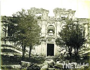 圓明園于1860年被英法聯(lián)軍焚毀之后是片瓦不留,還是另有景象?三張1875年拍攝的圓明園西洋樓諧奇趣景區(qū)原版老照片就是答案:雖是殘垣斷壁,但西式建筑的外輪廓、精美的雕刻和噴泉水池依然清晰。這三張圓明園老照片和另外三張清漪園(頤和園前身)的原版老照片將在北京華辰2008年春拍中被拍賣。