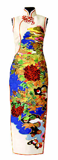 這是一個很有意思的展覽。對于今天的大眾來說,旗袍和王家衛電影中老上海的懷舊氣氛、東方式的曖昧欲望、被約束卻又有節制地誘惑著人的身體交纏在一起,是一個符號一樣的東西。而“百年旗袍展”則比較嚴肅,它展示的這些旗袍實物,集歷史性、學術性、藝術性、觀賞性于一體,從清末到二十世紀末,跨越了整整100年的時間。展出的百款經典旗袍按照時間順序分為五個部分:清末、20世紀初葉、20世紀20年代、20世紀三四十年代、當代。這些款式經典、色彩豐富、紋飾紛呈的展品均由專家精心遴選而出,體現了各個時期旗袍最主要的特點與風格。