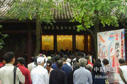 4月28日下午,新世紀以來最大規模的一次張大千作品展在四川成都杜甫草堂開展,吸引了眾多書畫愛好者前來參觀。作 者:伊西科