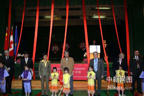 原中國全國人大常委會副委員長許嘉璐,中國國家漢語國際推廣領(lǐng)導(dǎo)小組辦公室(漢辦)主任、孔子學(xué)院總部總干事許琳等中國要員專程前來參加揭牌儀式。加方出席嘉賓有艾伯塔省省督林佐民(Norman Kwong)和省教育部部長大衛(wèi)•漢考克(David Hancock)以及聯(lián)邦、省、市三級政府代表等。