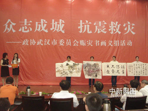 中新網(wǎng)武漢5月23日電 (記者 徐金波)20多位武漢市政協(xié)23日揮毫潑墨、寫字作畫(huà),通過(guò)義捐、拍賣等方式再次為四川地震災(zāi)區(qū)籌集到200多萬(wàn)元重建善款。
