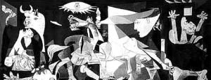 《格爾尼卡》是畢加索最著名的作品,描繪西班牙內戰時期格爾尼卡被德軍轟炸機轟炸為平地的慘景。
